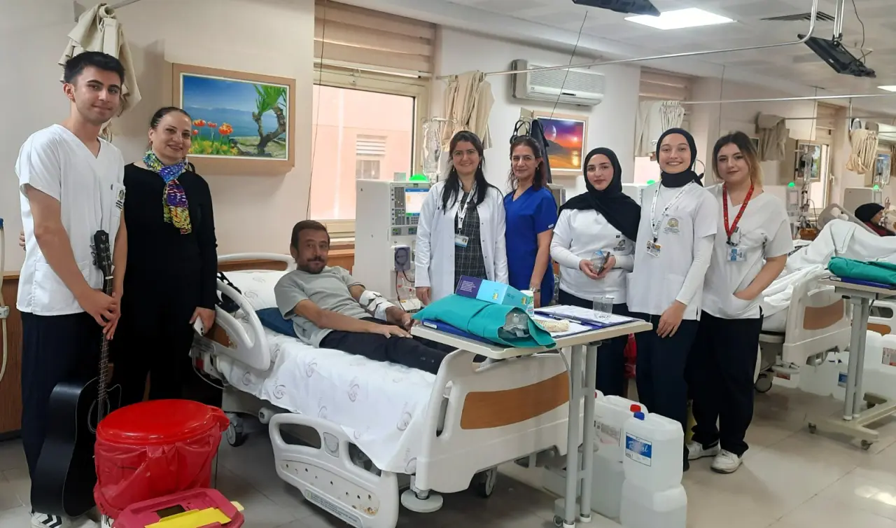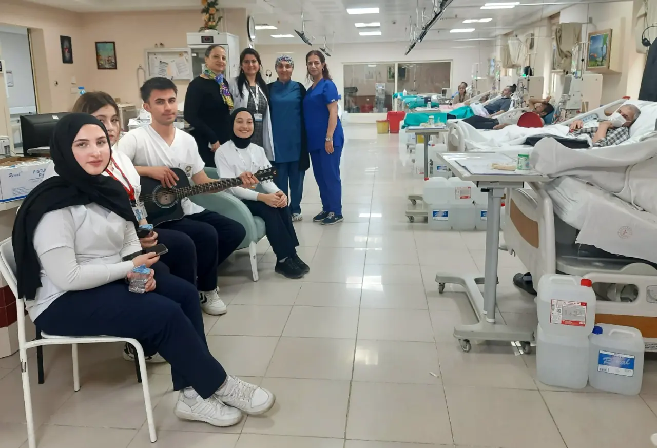 Selçuk Üniversitesi Akşehir Kadir Yallagöz Sağlık Yüksekokulu Hemşirelik Bölümü öğrencileri, Akşehir Devlet Hastanesi’nde hemodiyaliz tedavisi gören hastalar için anlamlı bir etkinliğe imza attı. Akşehir’de ilk kez gerçekleştirilen uygulama kapsamında öğrenciler, tedavi sırasında hastalara müzik dinletisi sundu.