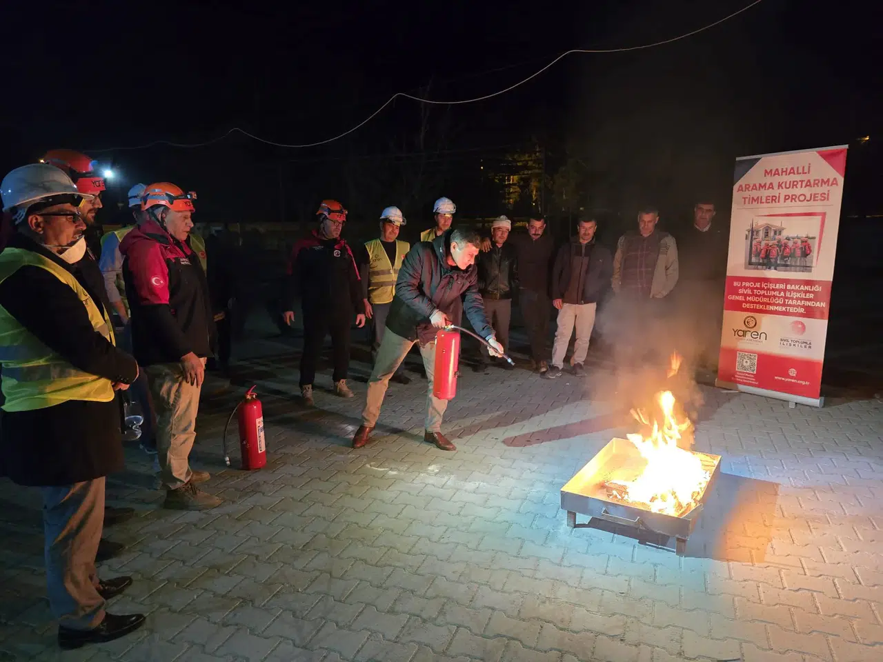 Programın uygulamalı bölümünde gönüllüler, oluşturulan senaryolar üzerinden yangın söndürme tüpü kullanımı ve acil durum müdahalesi konusunda pratik yapma fırsatı buldu.