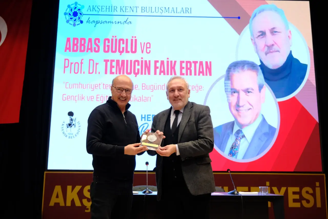 Akşehir Belediyesi tarafından düzenlenen Akşehir Kent Buluşmaları kapsamında, gazeteci Abbas Güçlü ile Prof. Dr. Temuçin Faik Ertan Akşehirli vatandaşlarla bir araya geldi. Akşehir Kültür Merkezi’nde gerçekleştirilen programda, “Cumhuriyet’ten Bugüne, Bugünden Geleceğe: Gençlik ve Eğitim Politikaları” başlığı ele alındı.