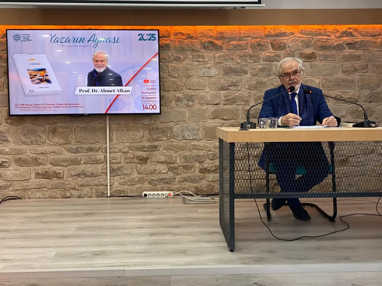 Türkiye Yazarlar Birliği (TYB) Konya Şubesi’nin düzenlediği “Yazarın Aynası” etkinlik serisi kapsamında, Saffet Yurtsever’in organize ettiği ve Prof. Dr. Ahmet Alkan’ın konuşmacı olduğu “Mevsim Hep Acıbahar” programı, TYB Konya Şubesi D. Mehmet Doğan Kütüphanesi’nde gerçekleştirildi. Etkinlikte Alkan, kaleme aldığı roman üzerinden yazarlık serüvenini, eserinin tarihsel arka planını ve Anadolu insanının zorlu yaşam koşullarını katılımcılarla paylaştı.
