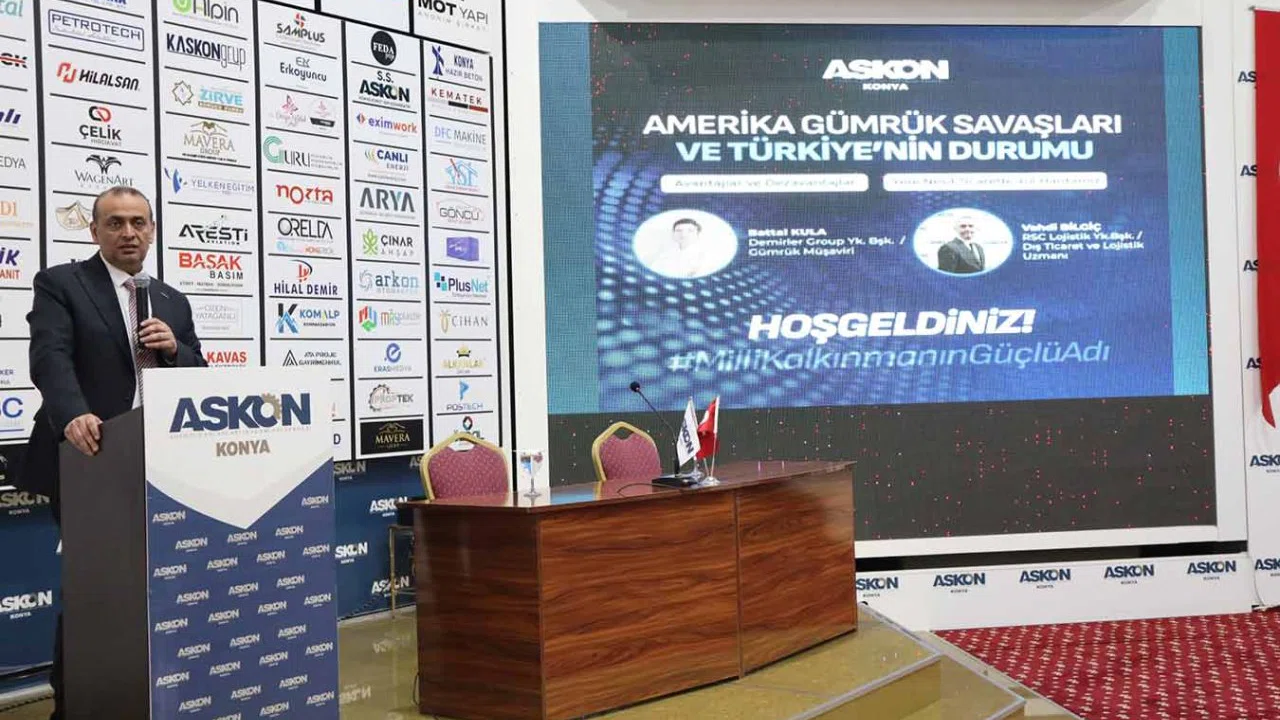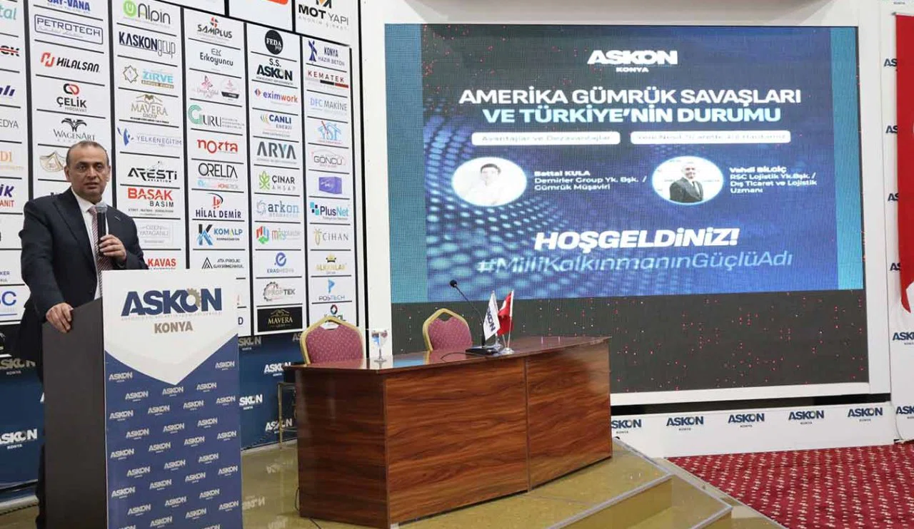 Anadolu Aslanları İşadamları Derneği (ASKON) Konya Şubesi tarafından düzenlenen “Amerika Gümrük Savaşları ve Türkiye’nin Durumu” başlıklı eğitim programında, ihracat ve lojistik sektörünün önemli isimleri Konya iş dünyasıyla buluştu.