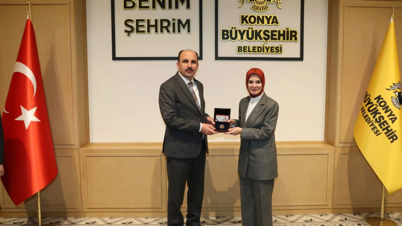Aile ve Sosyal Hizmetler Bakanı Mahinur Özdemir Göktaş, Konya Büyükşehir Belediye Başkanı Uğur İbrahim Altay’ı ziyaret etti. Ziyaret, Büyükşehir Belediyesi Taş Bina’da gerçekleştirildi.