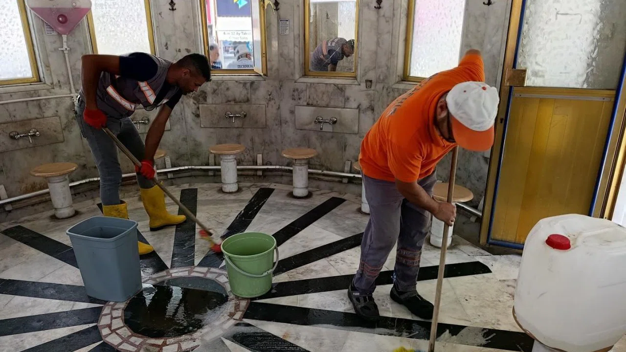 Temizlik İşleri Müdürlüğü ekipleri, ilçe genelinde bulunan umumi şadırvan ve tuvaletlerde kapsamlı temizlik ve dezenfekte işlemleri gerçekleştirdi.