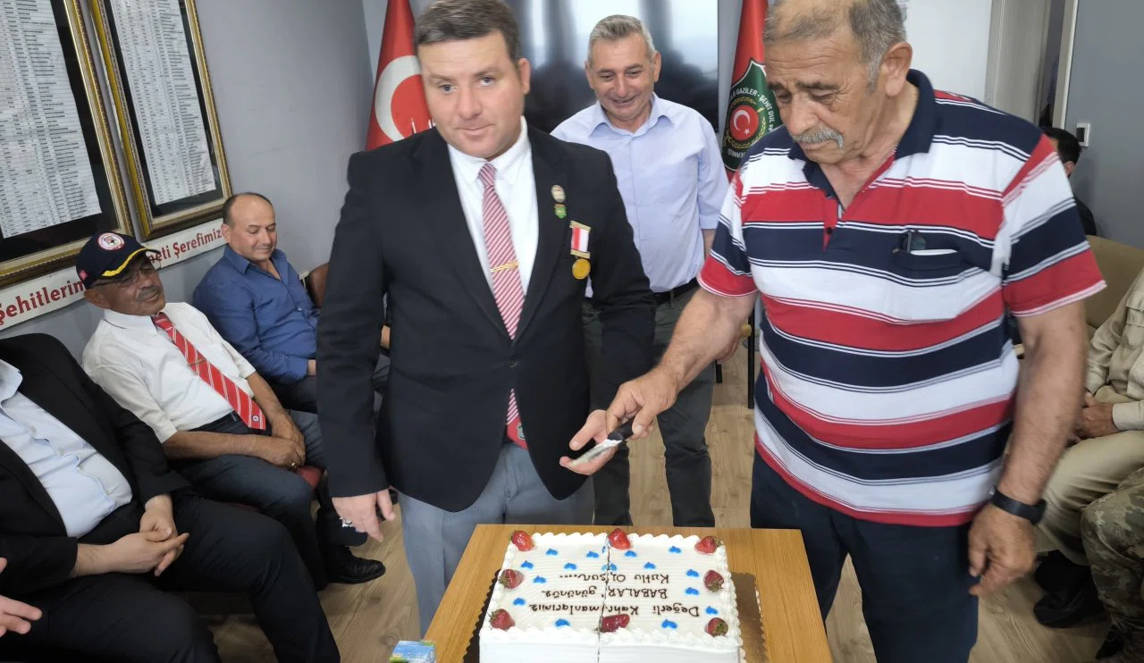 Daha sonra üzerinde "Değerli kahramanlarımız Babalar Gününüz kutlu olsun" yazısı bulunan pastayı Gazi Ahmet Taşkın ile Muharip Gaziler Derneği Beyşehir Temsilcisi Gazi Mustafa Gümüşkan birlikte kesti.
