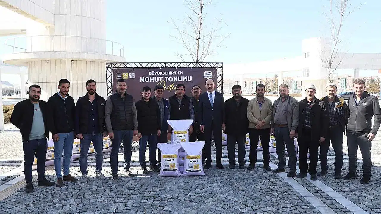 Konya Büyükşehir Belediye Başkanı Uğur İbrahim Altay, değişen iklim şartlarına karşı 31 ilçede tarımsal destekleri şekillendirdiklerini belirterek, “Kuraklıkla mücadelede ürün deseninin değişmesi büyük önem taşıyor. Nohut gibi az su isteyen ve iklim şartlarına daha dayanıklı ürünlerin yaygınlaştırılması çiftçimizin maliyetini düşürdüğü gibi su kaynaklarının korunmasına da katkı sağlıyor. Biz de 31 ilçemizde önceden başvurularını aldığımız çiftçilerimize 7 bin 725 dekar alanda ekilmek üzere yüzde 50 hibeli, 115 bin 875 kilogram nohut tohumu desteğinde bulunduk. Yapılan bu destekleme ile yaklaşık bin 100 futbol sahası büyüklüğündeki bir alanı susuz tarımla üretime kazandırmış olacağız. Bereketli olmasını diliyorum” diye konuştu.