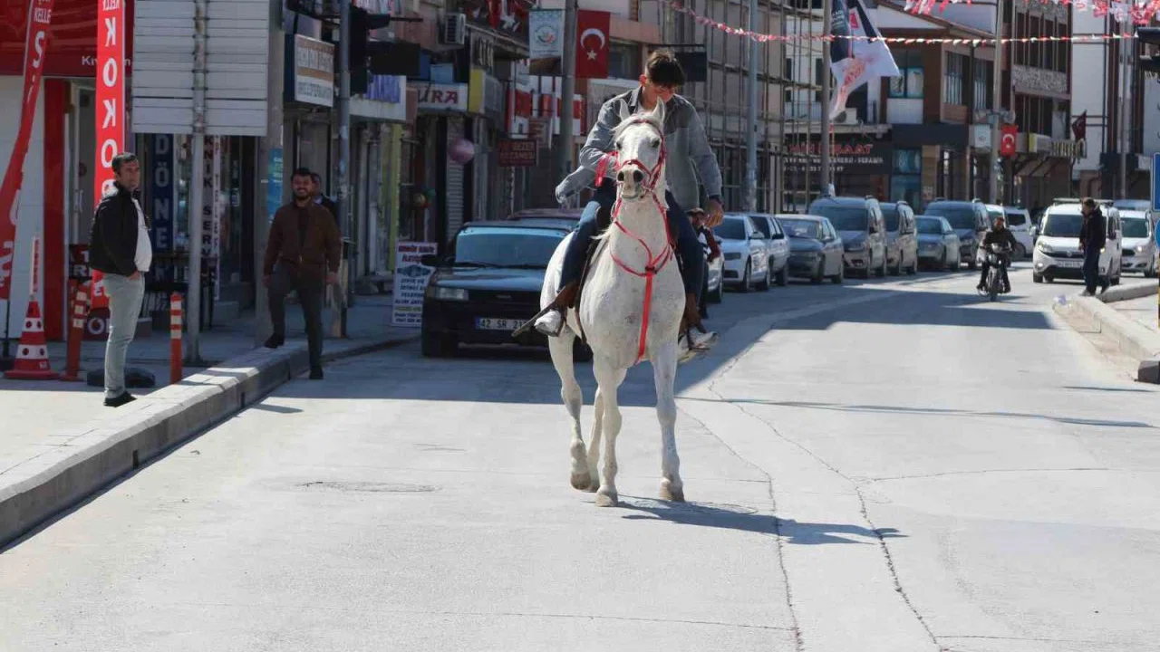 At binmeye merak Yunus Karakaya, kendisine ait atıyla şehir merkezinde dolaştı. Araç trafiğinin olmaması ve havanın güneşli olmasını fırsat bilen Yunus Karakaya, dört nala ile Konya ve İnönü caddelerinde tur attı. Araç trafiğine alışkın olan vatandaşlar bir anda atın caddede gezdiğini görünce hem şaşkınlıkla izledi hem de cep telefonları ile görüntü çekti. Çarşıda yaklaşık 15 dakika boyunca tur yapan Yunus Karakaya şaşkın bakışlar arasında çiftliğine geri döndü.