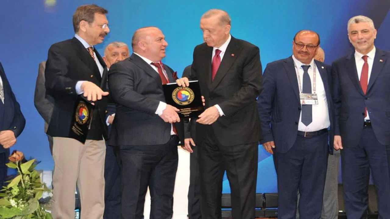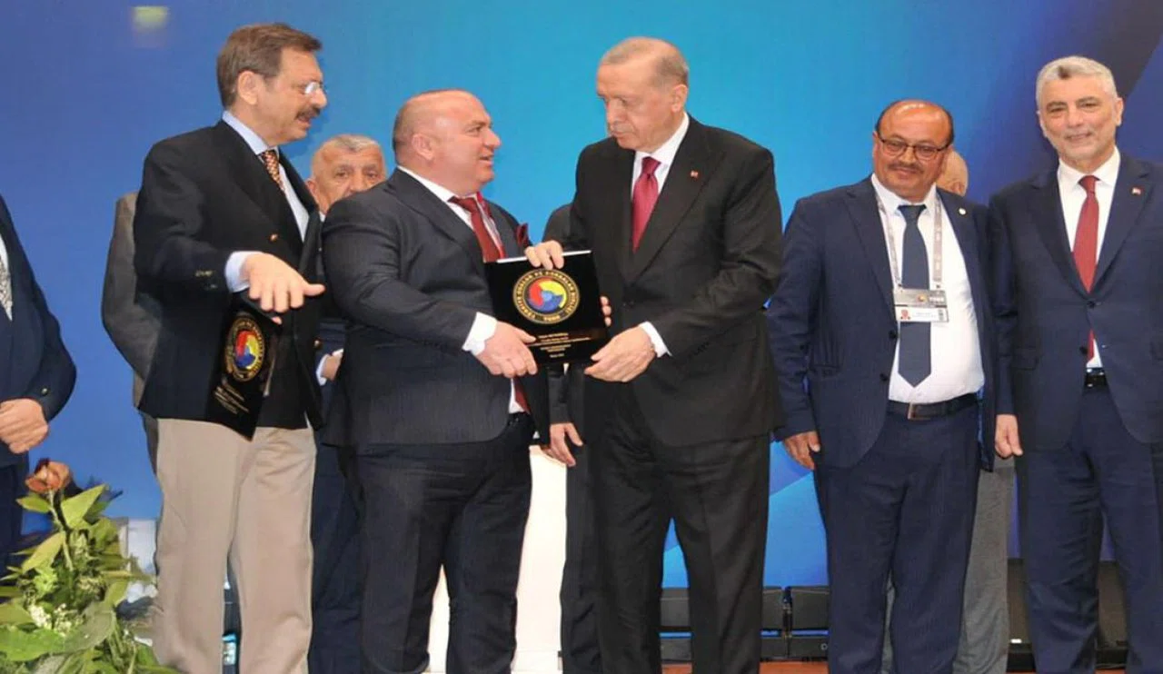 Türkiye Odalar ve Borsalar Birliği (TOBB) Hizmet Şeref Belgesi ve Plaket Töreni'nde Konyalı iş insanı, Çelikkayalar AVM Yönetim Kurulu Başkanı Ali Kaya, Cumhurbaşkanı Recep Tayyip Erdoğan'ın elinden ödül aldı.