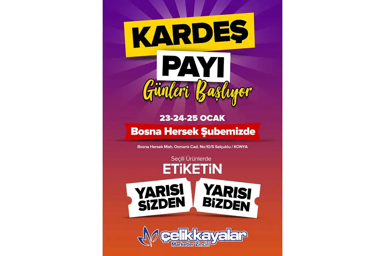 Çelikkayalar Bosna Hersek mağazası, 23-24-25 Ocak tarihlerinde avantajlı alışveriş fırsatlarını müşterileriyle buluşturuyor. “Kardeş Payı” adıyla hayata geçirilen özel kampanya kapsamında, etiketin yarısı bizden, yarısı sizden fırsatıyla cazip bir alışveriş deneyimi sunuluyor.