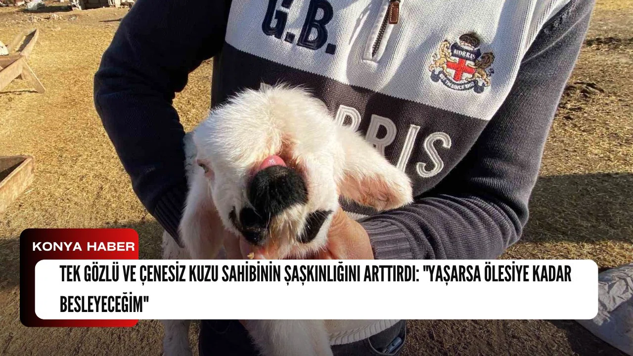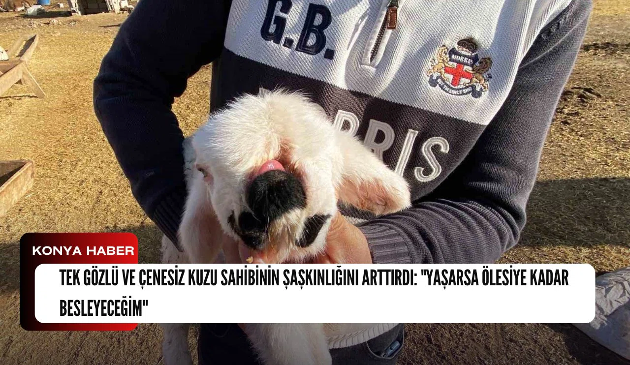 Konya'nın Kulu ilçesinde sol gözü olmayan ve çenesinde anormallik olan kuzu, sahibini şaşkına çevirdi.
