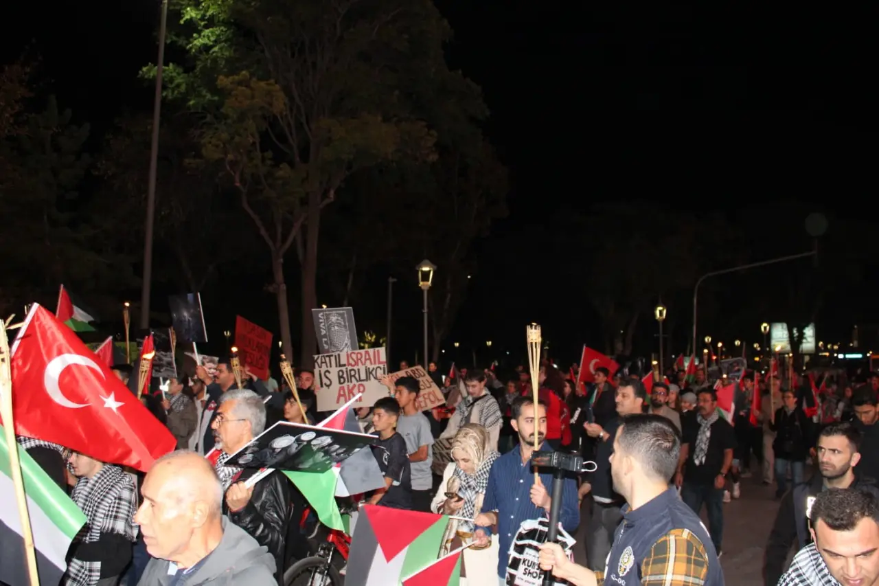 Buradan tüm İslam coğrafyasına sesleniyoruz, birlik zamanı şimdi. Söz değil, eylem zamanı şimdi, her evde bir dua, her sokakta bir direniş, her kalpte bir Filistin olmalı. Kardeşlerim; unutmayın, zalim güçlü olduğu için değil, mazlum sustuğu için zalimdir! Konya'dan Gazze'ye, Mevlana diyarından Mescid-i Aksa'ya kadar bu ses yankılanacak: Kahrolsun İsrail'in zulmü Yaşasın Filistin direnişi Kudüs onurumuzdur, özgürlük imanımızdır."