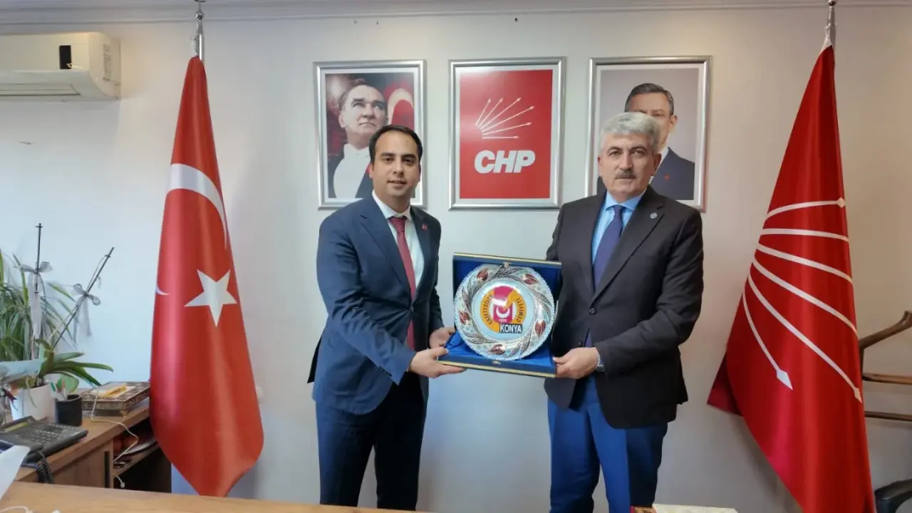 CHP Konya İl Başkanı Nejat Türktaş, Konya Gazeteciler Cemiyeti Başkanı Sefa Özdemir ve yönetim kurulu üyeleri Erhan Dargeçit ile Mustafa Uğurlu’yu makamında ziyaret etti.