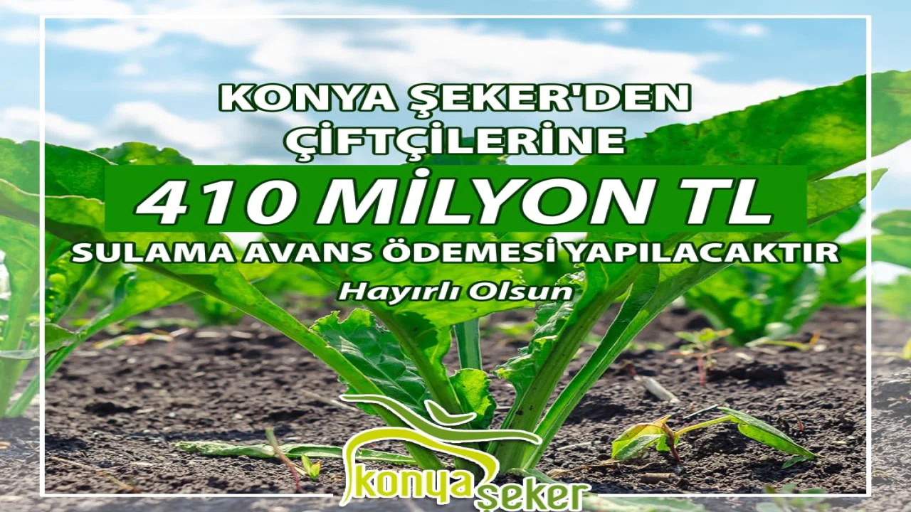 Konya Şeker, 2025/2026 kampanya döneminde üretici ortaklarına 410 milyon TL’lik pancar sulama avansı desteği sağlıyor.