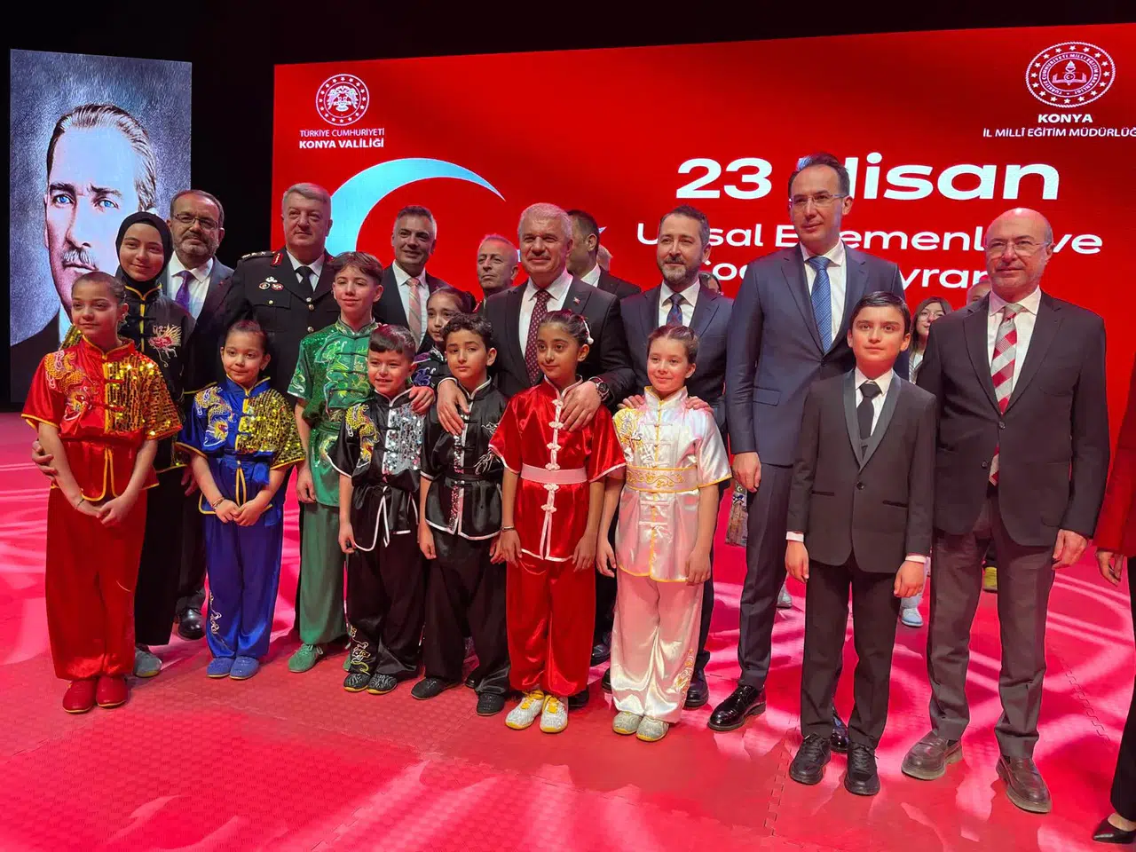 Programa; Konya Valisi İbrahim Akın, Konya İl Millî Eğitim Müdürü Murat Yiğit, 23 Nisan’a özel “temsilî vali” olarak seçilen Ali İhsan Dayıoğlugil İlkokulu öğrencisi Ertuğrul Atalay, il protokolü, siyasi parti temsilcileri, kurum amirleri, öğretmenler, öğrenciler ve çok sayıda davetli katıldı.