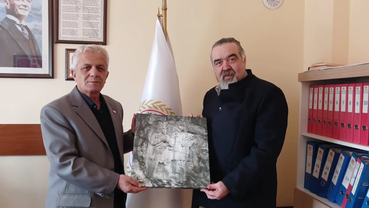 Ziyaret sonunda Erhan Dargeçit, Başkan Hasan Hüseyin Yazar’a günün anısına bir hediye takdim ederek nazik ev sahipliği için teşekkür etti.