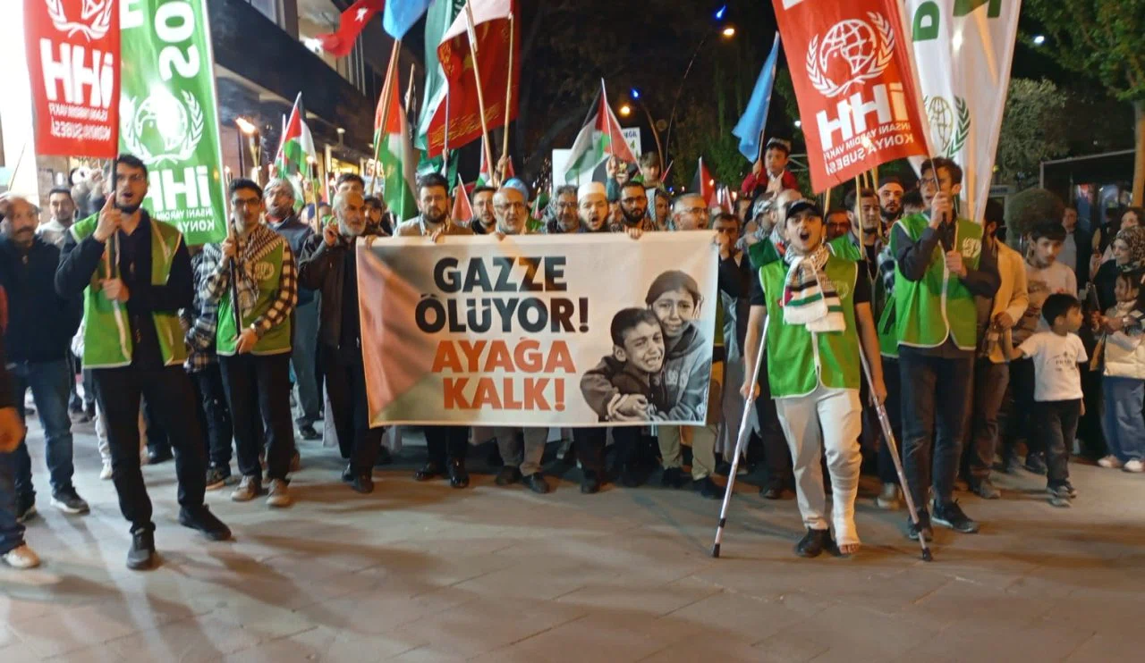 Kent merkezinde toplanan kalabalık, sloganlar eşliğinde yürüyerek İsrail’in Gazze’deki saldırılarını protesto etti. Yürüyüş boyunca Türk ve Filistin bayrakları taşınırken, sık sık "Gazze’ye özgürlük", "Kahrolsun İsrail" ve "Filistin halkı yalnız değildir" sloganları atıldı.