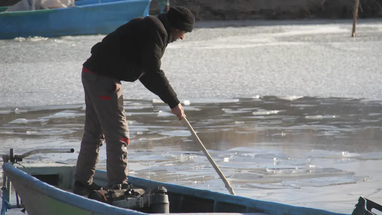 Beyşehir Gölü’nün kıyı kesimlerinde oluşan kalın buz tabakası, limanlardan açık sulara çıkışı neredeyse imkânsız hale getirdi. Avcı tekneleri buzlar arasında mahsur kalırken, balıkçılar mesailerine ara vermek zorunda kaldı. Teknelerin zarar görmemesi için balıkçılar, sopalar ve motor gücüyle buz kırma mesaisi yürütüyor; aksi halde teknelerin ve ağların ciddi zarar görebileceği belirtildi.
