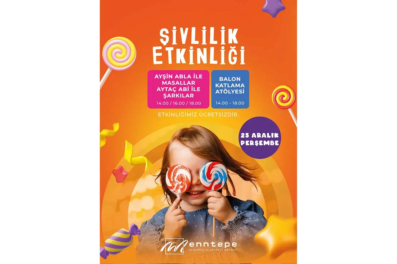 25 Aralık Çarşamba günü Şivlilik geleneği kapsamında, gün içerisinde 3 seans olarak düzenlenecek, Ayşin Abla ile Masallar Aytaç Abi ile Şarkılar etkinliği ziyaretçilerle buluşacak.