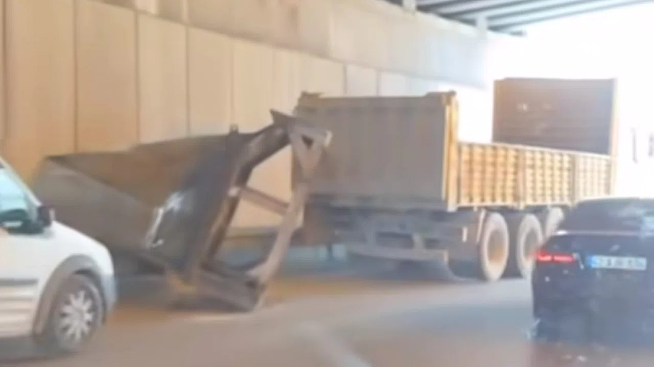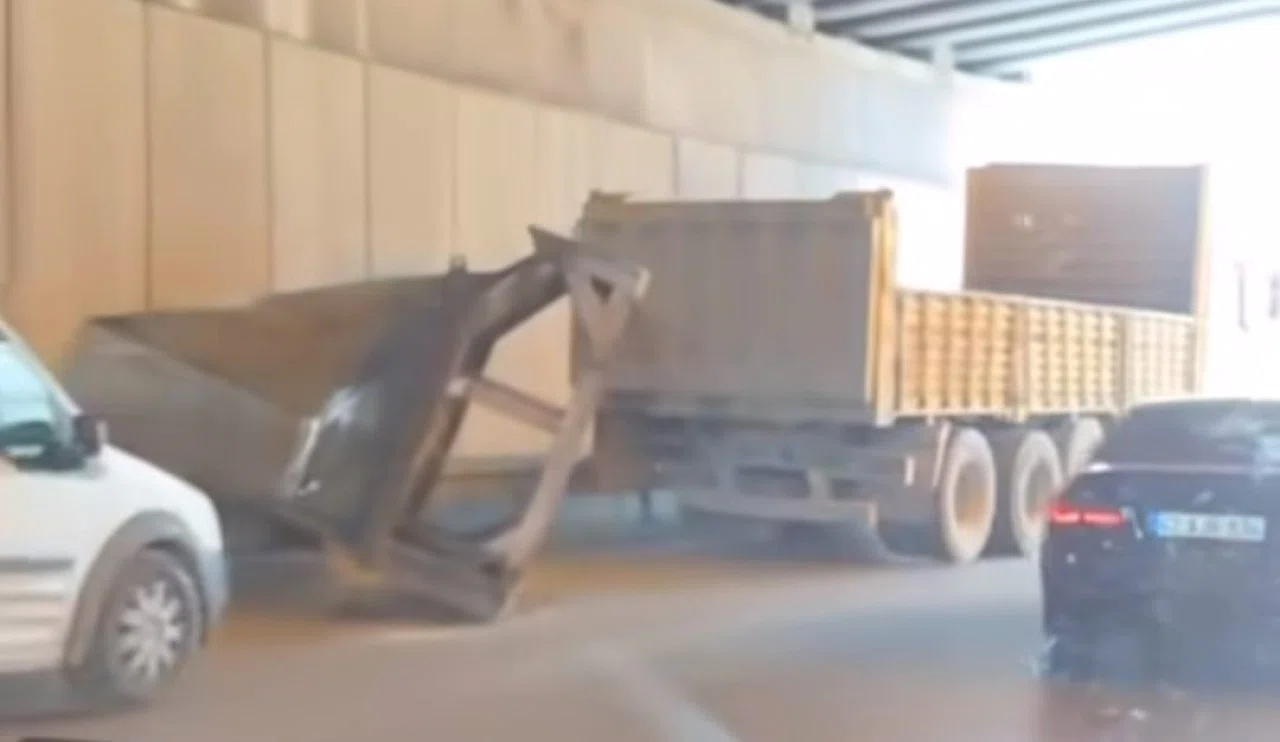 Konya Organize Sanayi Bölgesi’nde bulunan alt geçitte, düzensiz yüklenen malzemenin yola düşmesi sonucu trafik aksadı. Düşen büyük metal parça nedeniyle yolun tek şeride düştüğü ve sürücüler zor anlar yaşadı.