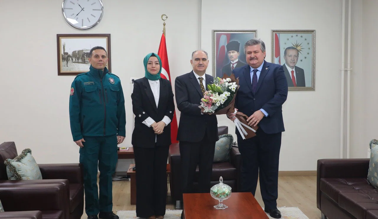 Konya Valisi Vahdettin Özkan 26 Ocak Dünya Gümrük Günü münasebetiyle Konya Gümrük Müdürü Hasan Hüseyin Koçak, Şef Ceylan Toprak ve Gümrük Muhafaza Memuru Erhan Tosun ile bir araya geldi.