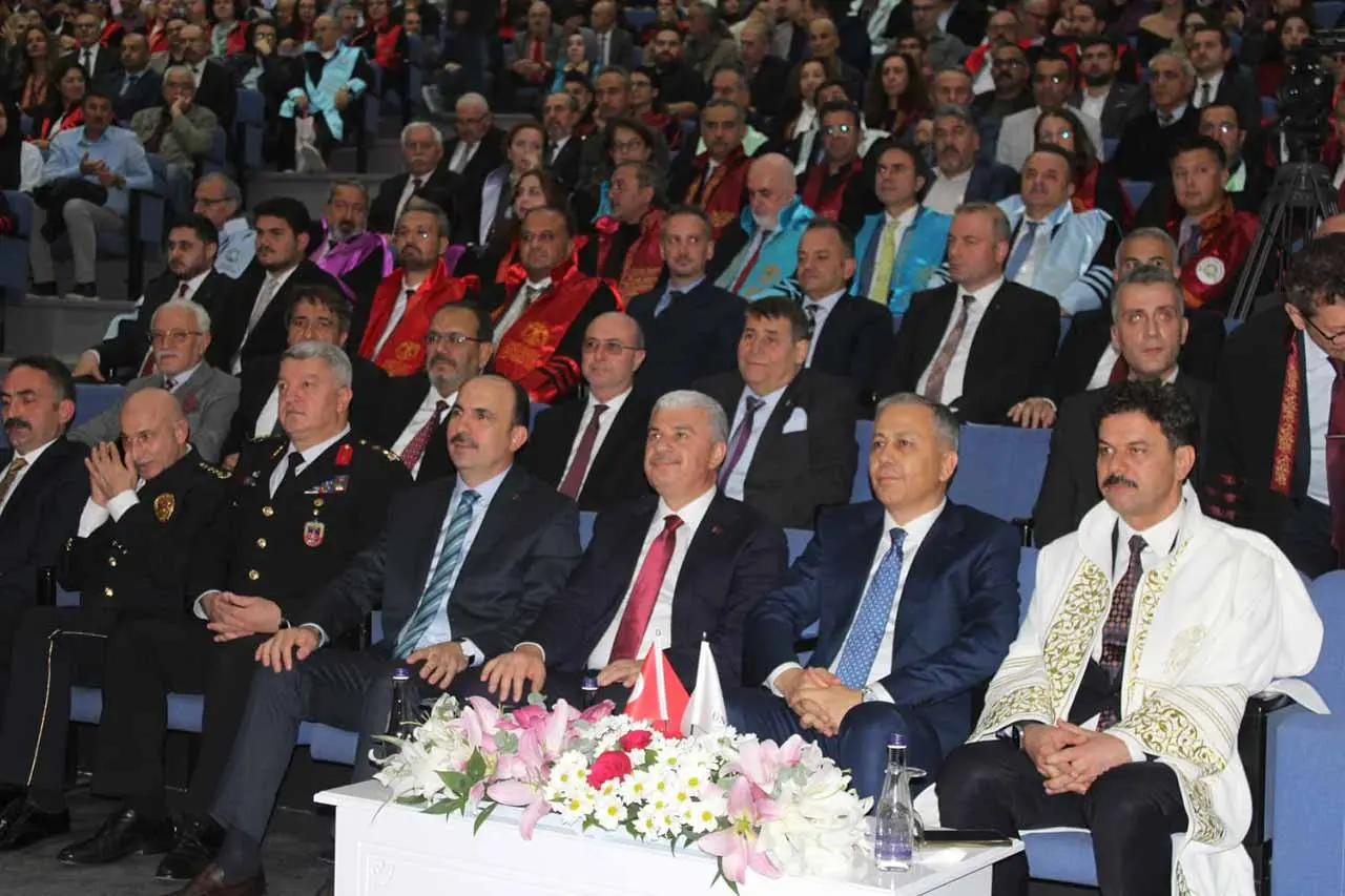 Törende konuşma yapan İçişleri Bakanı Yerlikaya, Selçuk Üniversitesi’nin 70 bini aşkın öğrencisiyle Türkiye'nin en büyük ilim yuvalarından biri olduğunu ifade ederek, "Bizim medeniyetimizde gençlik bir ruhtur, bir iddiadır, bir idealdir. Üniversiteler ise bir ülkenin aklını, vicdanını ve geleceğini inşa eden yapılardır. Bu anlamda Selçuk Üniversitesi yalnızca Konya'nın değil, Türkiye'nin de gurur kaynağıdır. Selçuk Üniversitesi'nin tarihi Konya'nın köklü marif geleneğinin bir devamıdır. Biz geçmişten aldığımız ilhamla nesli daha güçlü inşa etmenin mücadelesini veriyoruz" dedi.