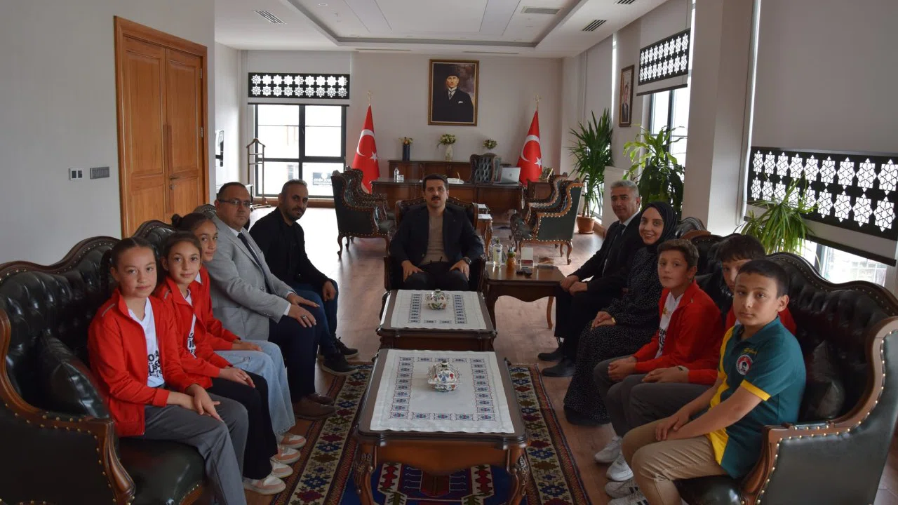 Başarı elde eden öğrenciler, Karapınar Kaymakamı Şenol Öztürk’ü makamında ziyaret etti. Kaymakam Öztürk, öğrencilere ödüllerini takdim ederken, emek veren öğretmenlere de başarı belgesi verdi.