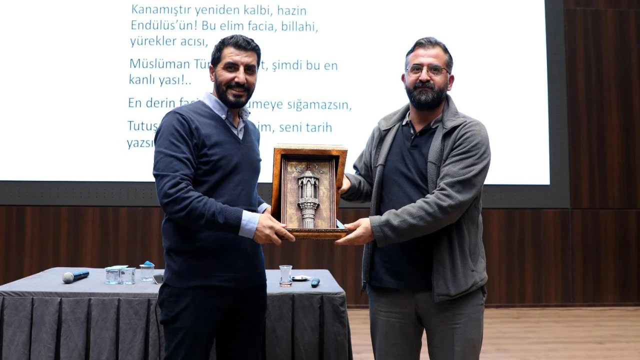 Karatay Belediye Başkan Yardımcısı Osman Ciğer, programda yaptığı konuşmada Karatay Kent Konseyi Kadim Kudüs Çalışma Grubu’nu organizasyon dolayısıyla tebrik etti. Osman Ciğer; “İsrail, 7 Ekim’den itibaren bütün dünya ülkelerinin gözü önünde Gazze’de büyük bir katliam ve soykırım yapıyor. Karatay Belediyesi Kent Konseyi Kadim Kudüs Çalışma Grubumuz da İsrail’in bu vahşetine karşı dikkat çekmek amacıyla çeşitli programlar organize etti. Programların ilkinde Gazeteci Ersin Çelik’i ağırladık. Bu programlarımız farklı misafirlerimiz ve içeriklerimizle devam edecek. Bu hafta yine “Filistin Hakkında Konuşmalıyız” adlı bir tiyatro oyunuyla 15 bin ortaokul öğrencisini buluşturacağız. Amacımız Filistin davasını sürekli gündemde tutmak. Biz ülke olarak elimizden geldiği kadar Filistinli kardeşlerimizin yanında olmaya devam edeceğiz” dedi.