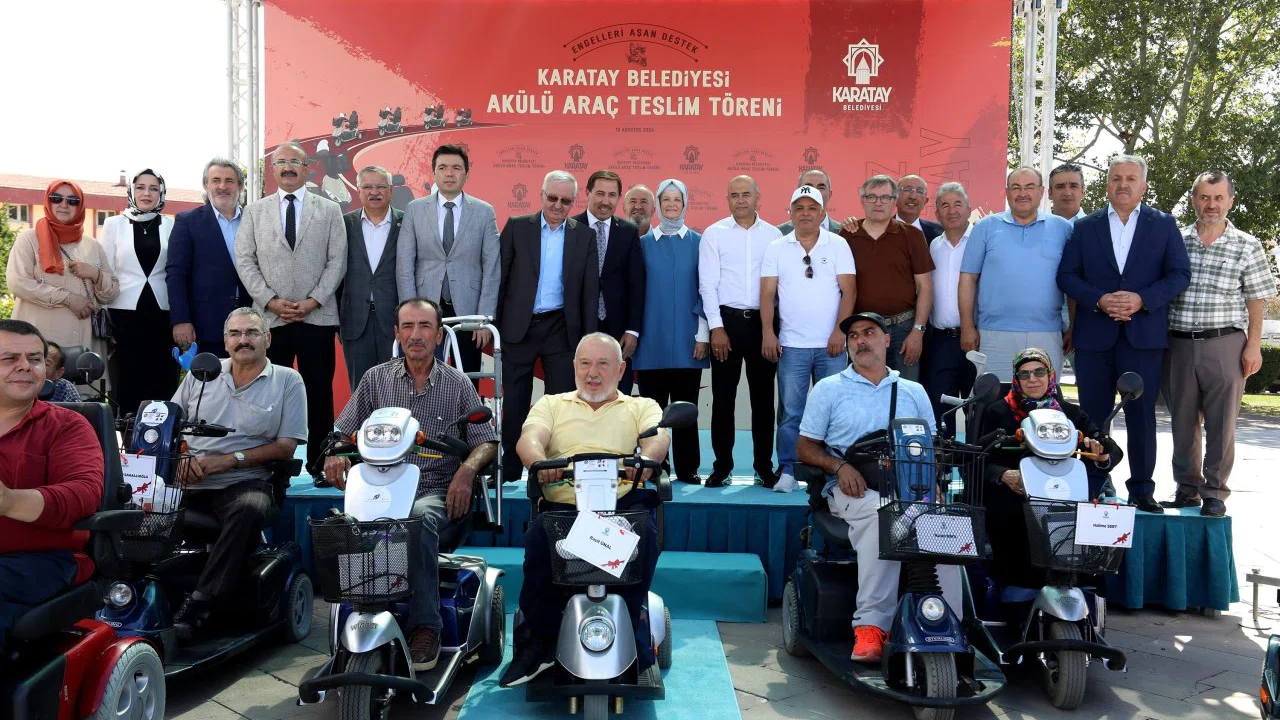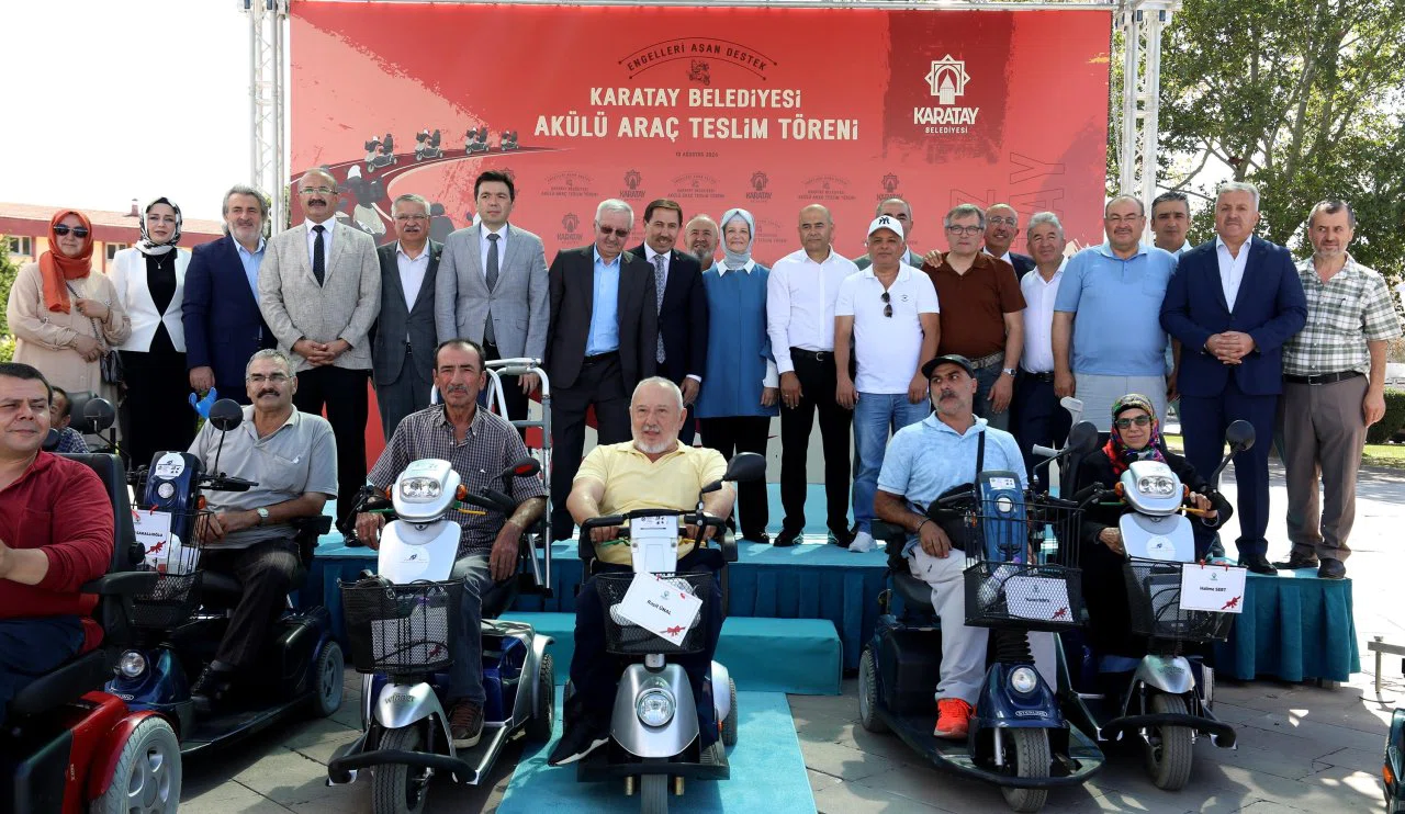 Karatay Belediyesi, engellilerin hayatını kolaylaştıracak akülü engelli araçlarını düzenlenen törenle engellilere hediye etti.