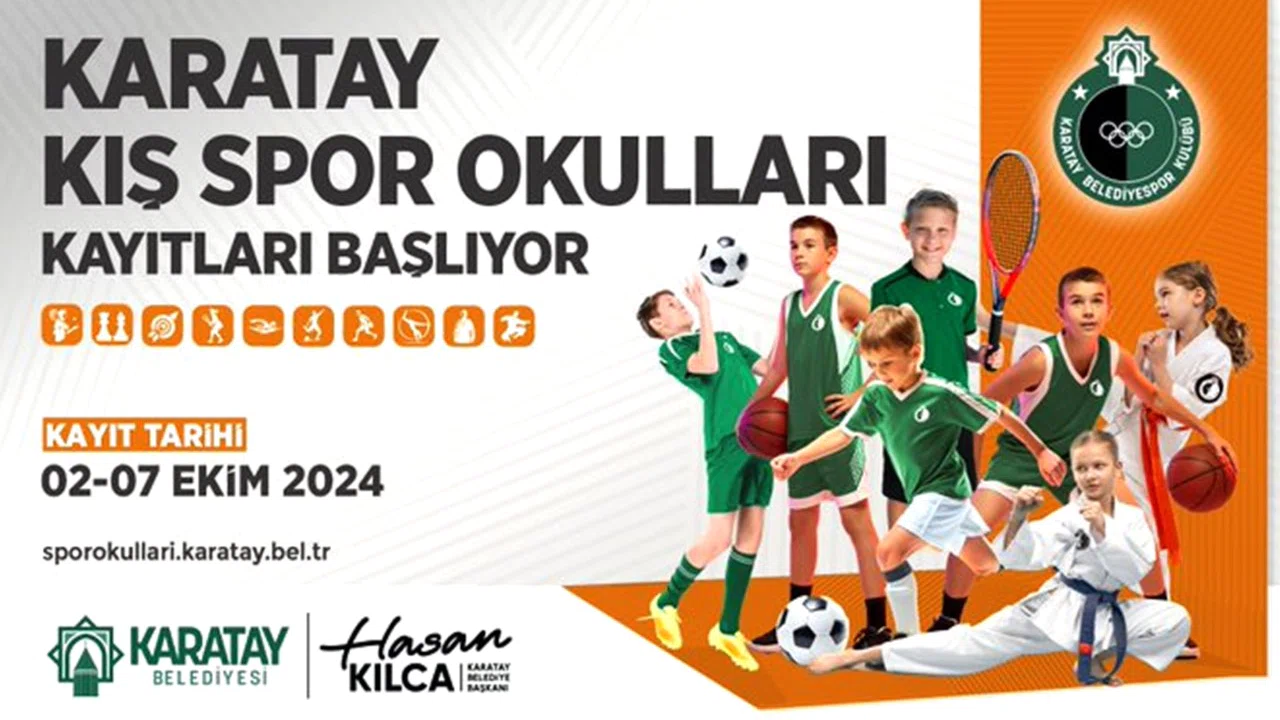 Karatay Kış Spor Okulları'nda Voleybol, Jimnastik, Karate, Taekwondo, Masa Tenisi, Okçuluk, Satranç, Yüzme, Futbol, Basketbol ve Tenis Kortu branşlarında 5-15 yaş aralığındaki çocuklar eğitim alabilecek.