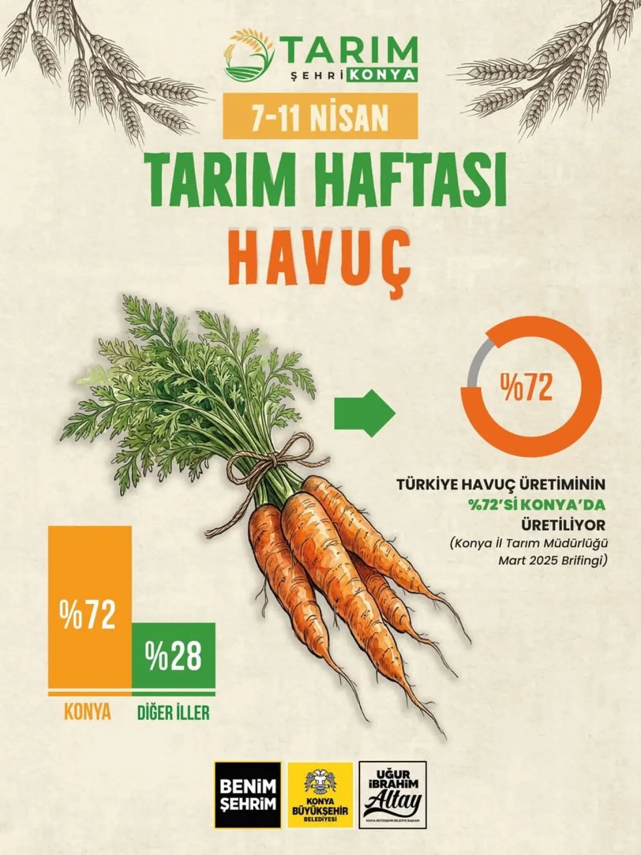 Başkan Altay, havuç, şeker pancarı, şalgam ve mısır üretiminde Konya’nın ortaya koyduğu başarının, şehrin tarımdaki öncü rolünü bir kez daha gösterdiğini belirtti. Altay, “Her biri bereketli topraklarımızın ve üreticimizin emeğinin ayrı bir karşılığı olan bu ürünler, Konya’nın ülke tarımına sunduğu katkının en somut göstergeleri arasında yer alıyor” dedi.
