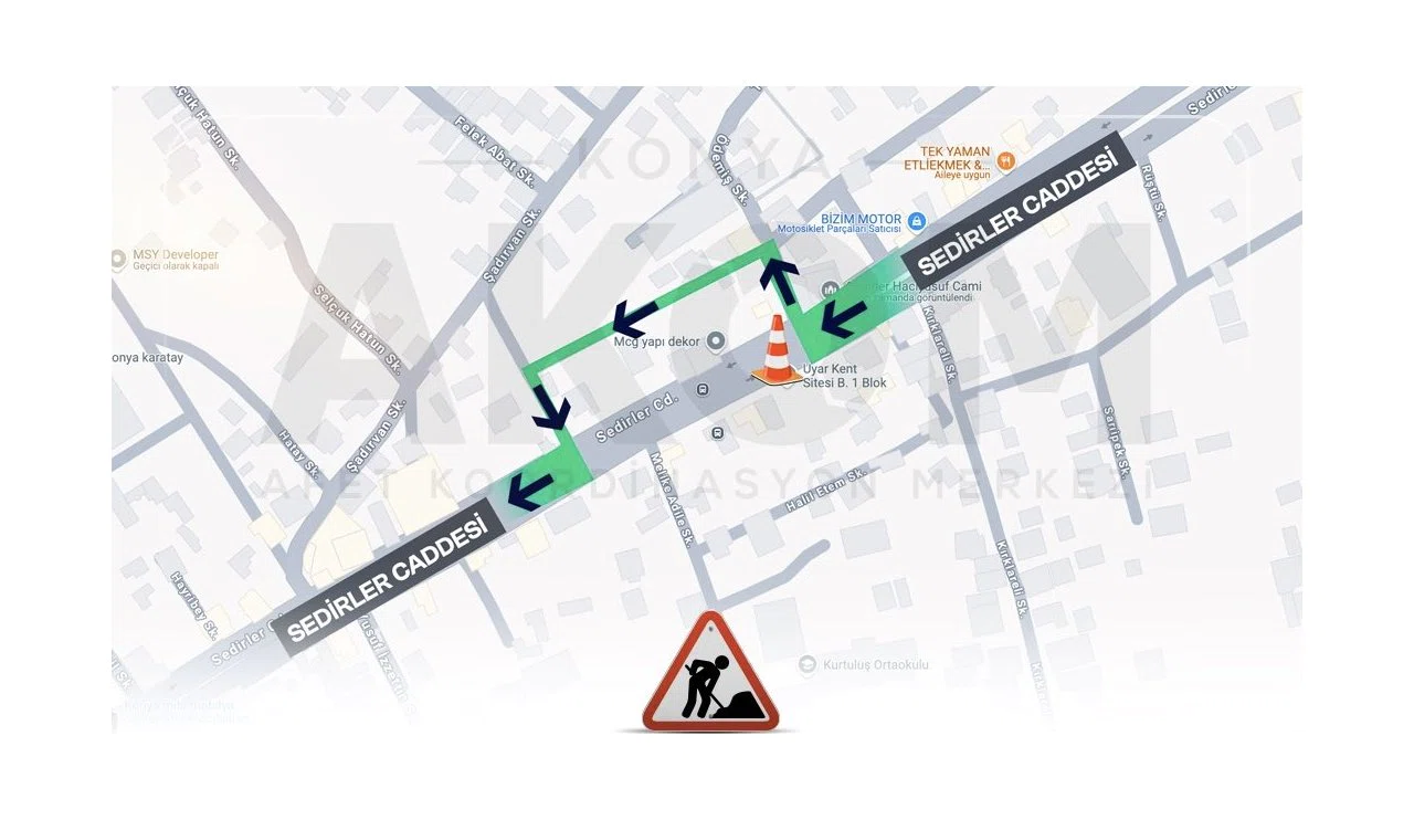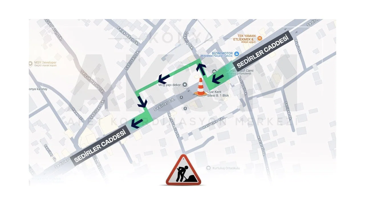 Konya AKOM’dan yapılan açıklamaya göre, Erenler Mahallesi’nde altyapı çalışmaları kapsamında yol kapaması uygulanacak.