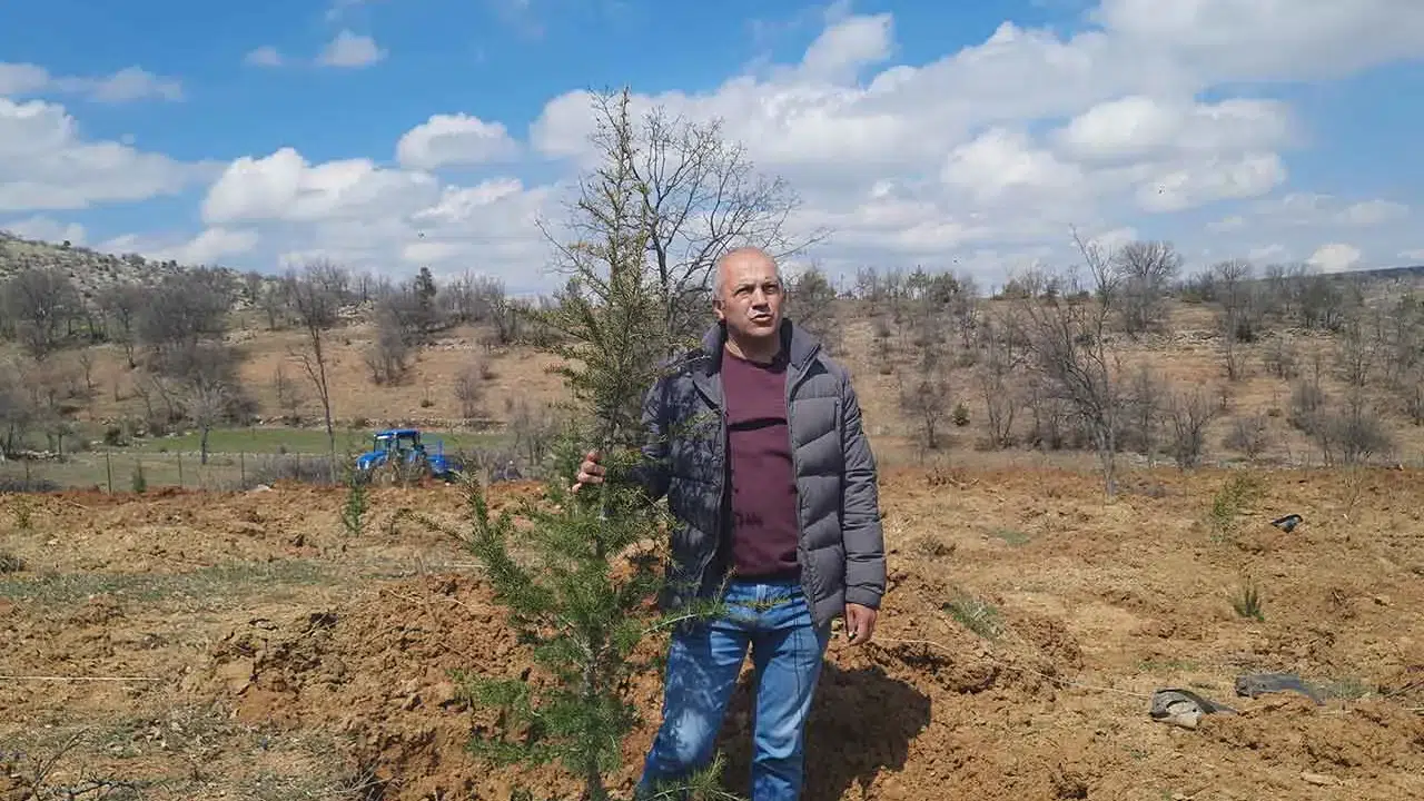 Konya'nın Bozkır ilçesinde bulunan 13 dönümlük atıl arazi, ladin ve sedir fidanlarıyla ağaçlandırılarak yeniden doğaya kazandırılıyor.