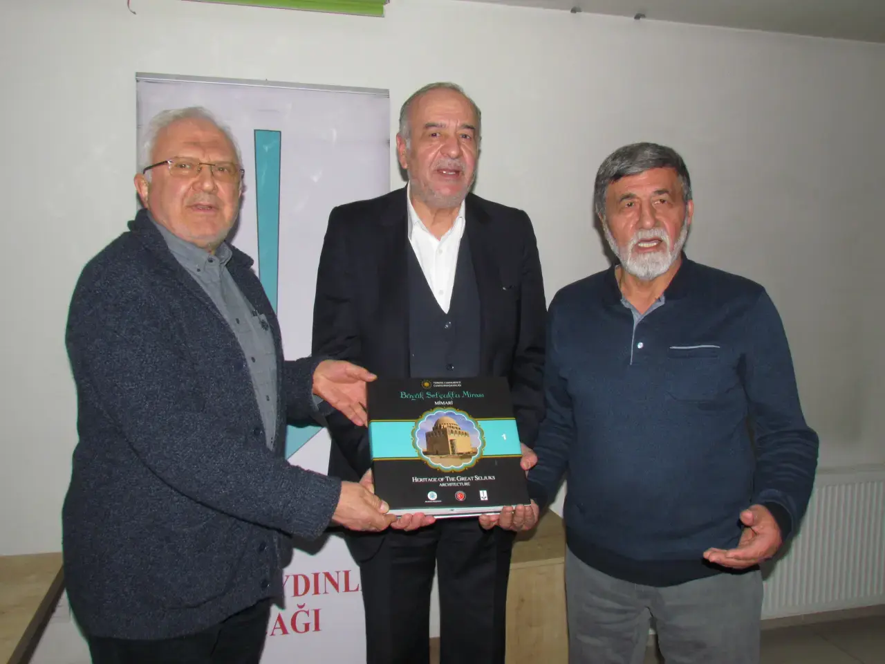 Program sonunda Dr. Mustafa Güçlü ve Başkan Yardımcısı Mustafa Sinan Ümit tarafından Tahir Büyükhelvacıgil’e günün anısına kitap takdim edildi.