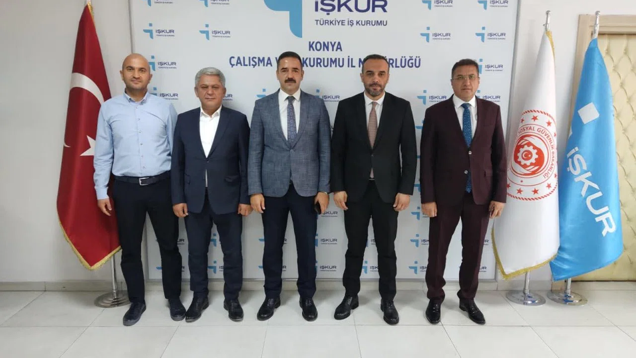 Konya Büyükşehir Belediyesi Genel Sekreter Yardımcısı Mustafa Yazlık, Çevre, Koruma ve Kontrol Dairesi Başkanı Yaşar Kahraman, İklim Değişikliği ve Sıfır Atık Dairesi Başkanı Serdar Koyuncu ve Atık Yönetimi Şube Müdürü Mehmet Akif Belen; Konya Çalışma ve İş Kurumu İl Müdürü Önder Çiftci'ye 'hayırlı olsun' ziyareti gerçekleştirdi.