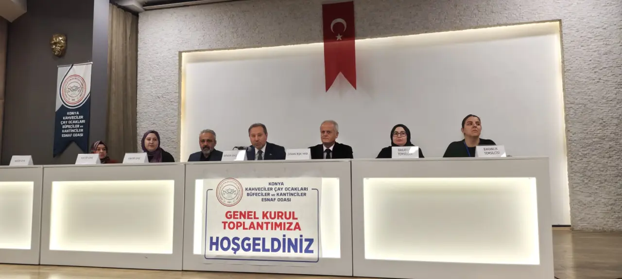 Konya Kahveciler, Çay Ocakları, Büfeciler ve Kantinciler Esnaf Odası Olağan Genel Kurulu, oda üyelerinin yoğun katılımıyla gerçekleştirildi. Tek listeyle gidilen genel kurulda mevcut başkan Mehmet Adil, üyelerin tamamının oyunu alarak yeniden başkanlığa seçildi ve güven tazeledi.