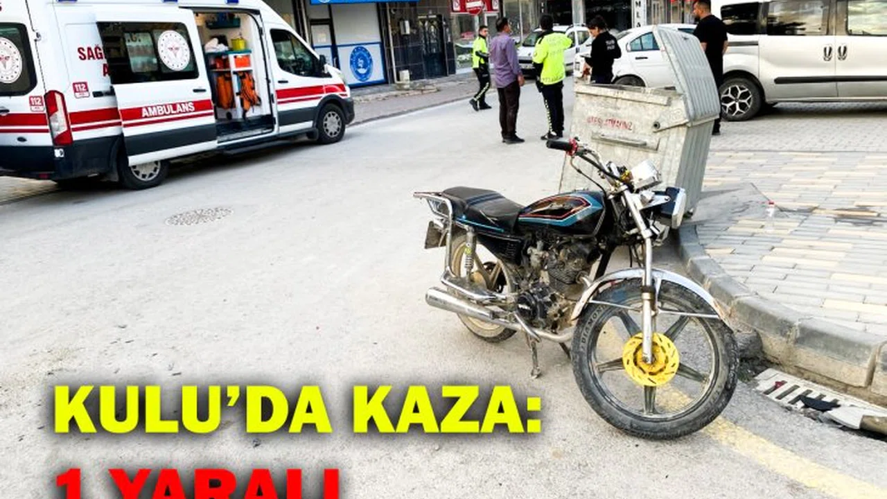 Konya'nın Kulu ilçesinde otomobille çarpışan motosiklet sürücüsü yaralandı.