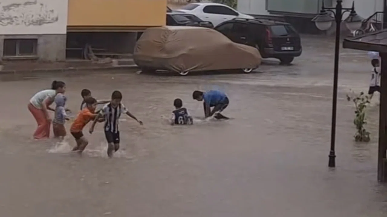 Konya’da meteorolojinin uyarılarının ardından beklenen sağanak yağış başladı. Aniden bastıran şiddetli yağmur, şehirde hayatı olumsuz etkiledi. Yağışın etkisiyle birçok cadde ve sokakta su birikintileri oluşurken, bazı bölgelerde yollar adeta göle döndü. Sıcaktan bunalan çocuklar su birikintilerinde vakit geçirdi.