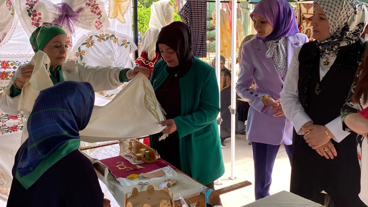 Cahit Zarifoğlu İlkokulu Spor Kulübü’nün halk oyunları gösterisiyle başlayan sergi, büyük beğeni topladı. Sergide; dokuma, kök boya, sim sırma, keçe, yiyecek-içecek, moda tasarımı ve el sanatları gibi birçok alanda hazırlanan özgün eserler yer aldı.