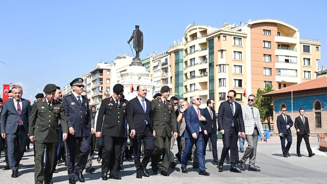 Konya Valisi İbrahim Akın, Konya Büyükşehir Belediye Başkanı Uğur İbrahim Altay, Konya Garnizon Komutanı Tümgeneral Emre Tayanç ve il protokolünün katılımıyla gerçekleşen törende, Gazi Mustafa Kemal Atatürk ve silah arkadaşları rahmet ve minnetle anıldı.