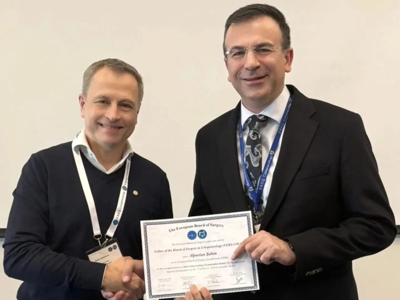 Konya Şehir Hastanesi Genel Cerrahi Kliniği hekimlerinden Doç. Dr. Alpaslan Şahin, Doç. Dr. Gürcan Şimşek ve Doç. Dr. Ersin Turan, Avrupa Birliği Tıp Uzmanları Birliği (UEMS) bünyesinde gerçekleştirilen European Board of Surgery Qualification (EBSQ) Coloproctology sınavını başarıyla tamamlayarak “Fellow of the European Board of Surgery in Coloproctology (FEBS-Coloproctology)” unvanını almaya hak kazandı.
