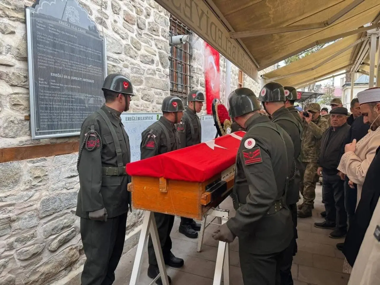 Cenaze törenine; Ereğli Belediye Başkanı Umut Akpınar, Ereğli Cumhuriyet Başsavcısı Hüseyin Yavuz, Ereğli Cezaevi Tabur Komutanı Cem Gökdemir, Ereğli Emniyet Müdürü Mehmet Gölükçü, Ereğli Jandarma Komutanı Fatih Kurt’un yanı sıra gaziler, siyasi parti temsilcileri, şehit aileleri ve çok sayıda vatandaş katıldı.