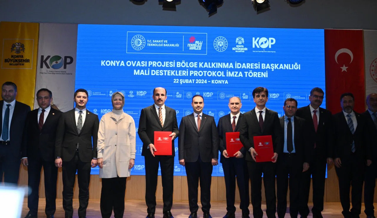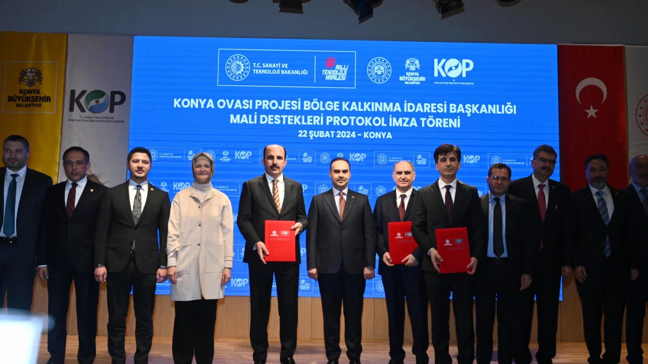 Sanayi ve Teknoloji Bakanlığı, Konya Valiliği, Konya Büyükşehir Belediyesi ve KOP Bölge Kalkınma İdaresi tarafından 128 milyon lira bütçeyle hayata geçirilecek 22 projenin protokolü Sanayi ve Teknoloji Bakanı Mehmet Fatih Kacır’ın katılımıyla imzalandı.