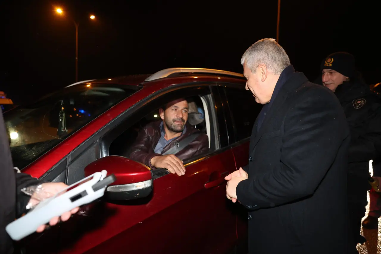 Yılbaşı gecesinde de görev başında olan güvenlik güçlerine özverili çalışmalarından dolayı teşekkür eden Vali Akın, trafik uygulaması kapsamında durdurulan vatandaşlarla da sohbet ederek yeni yıllarını kutladı.
