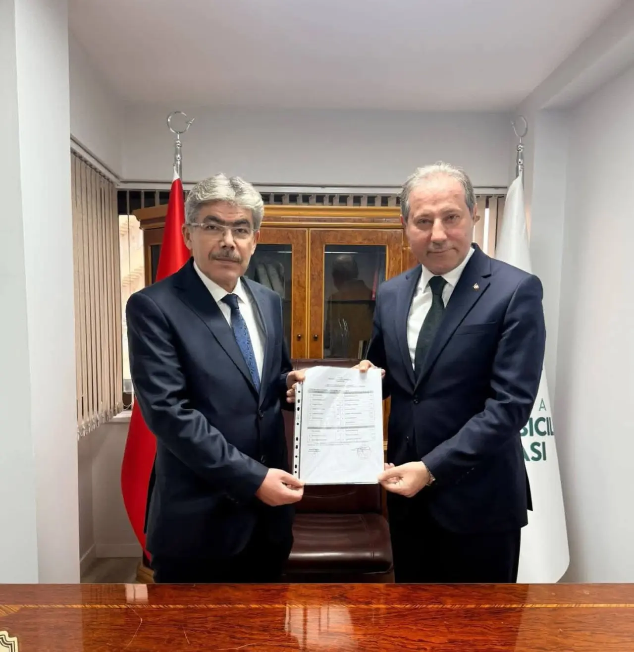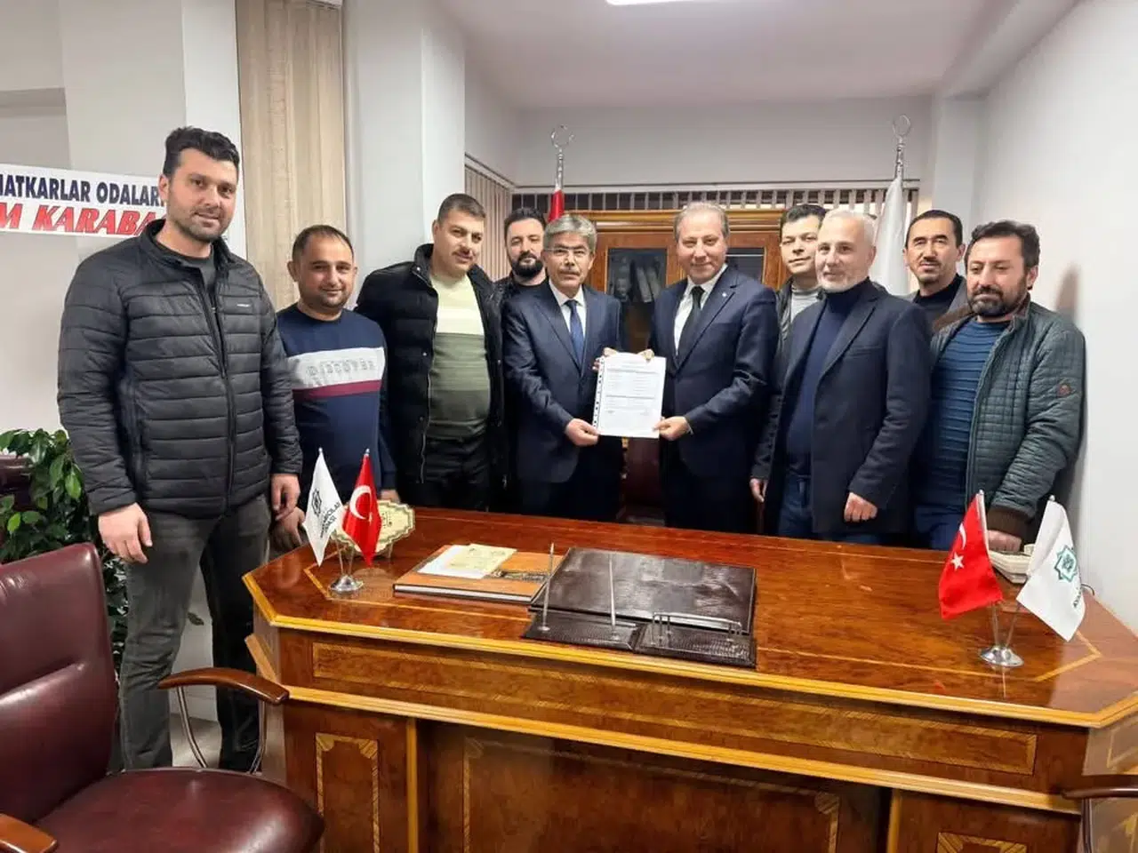 Konya Esnaf ve Sanatkârlar Odaları Birliği Başkanı Muharrem Karabacak, Selçuklu İlçe Seçim Kurulu tarafından hazırlanan yeni dönem mazbatayı Konya Ayakkabıcılar Odası Başkanı Muhammet Acar’a takdim etti.