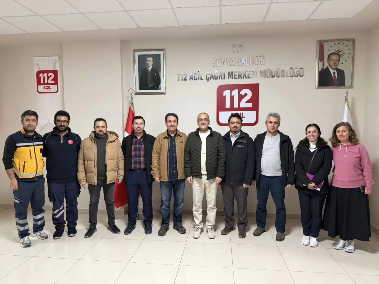 Konya Şehir Hastanesi yönetimi, Konya İl Sağlık Müdürlüğü ile birlikte yürütülen program kapsamında 112 Acil Çağrı Merkezi’ni ziyaret etti.