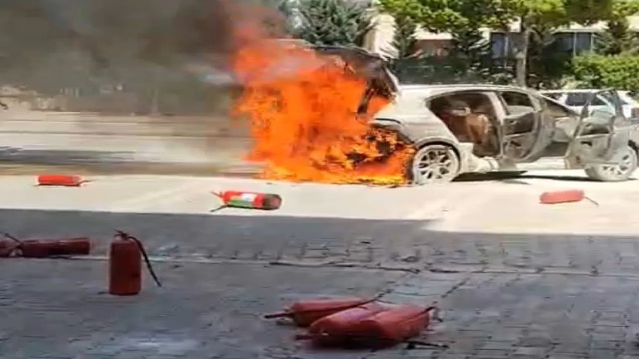 Yangın anı çevredeki bir vatandaşın cep telefonu kamerasına da yansıdı. Görüntülerde aracın altından çıkan alevler, hızla büyüyen yangın ve çocukların olayın ardından yaşadığı şok net bir şekilde görülüyor.