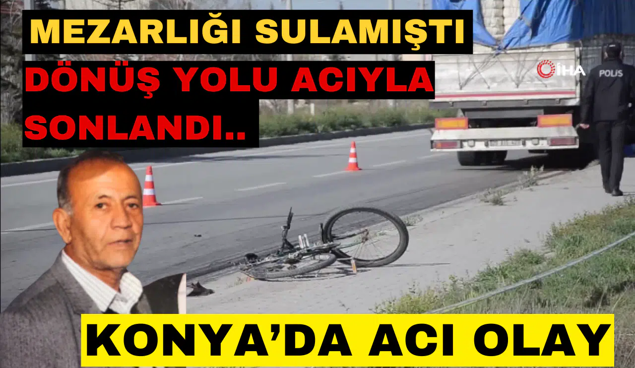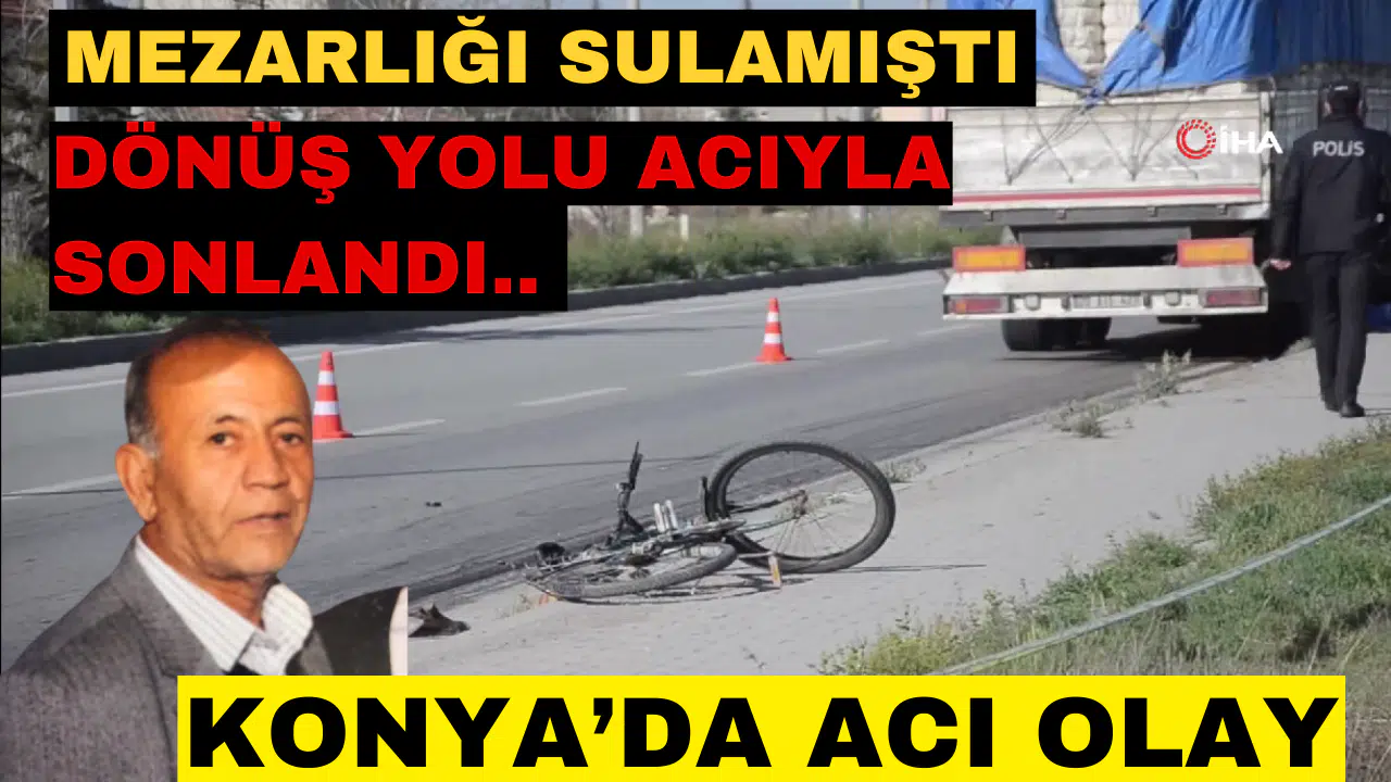 Konya'da mezarlıktaki ağaçları suladıktan sonra evine gitmek isteyen bisiklet sürücüsü yaşlı adam tırın altında kaldı..