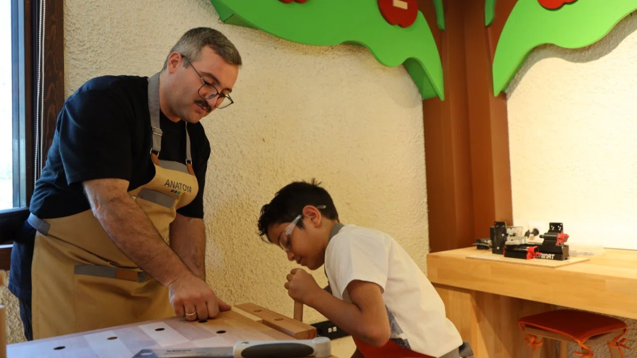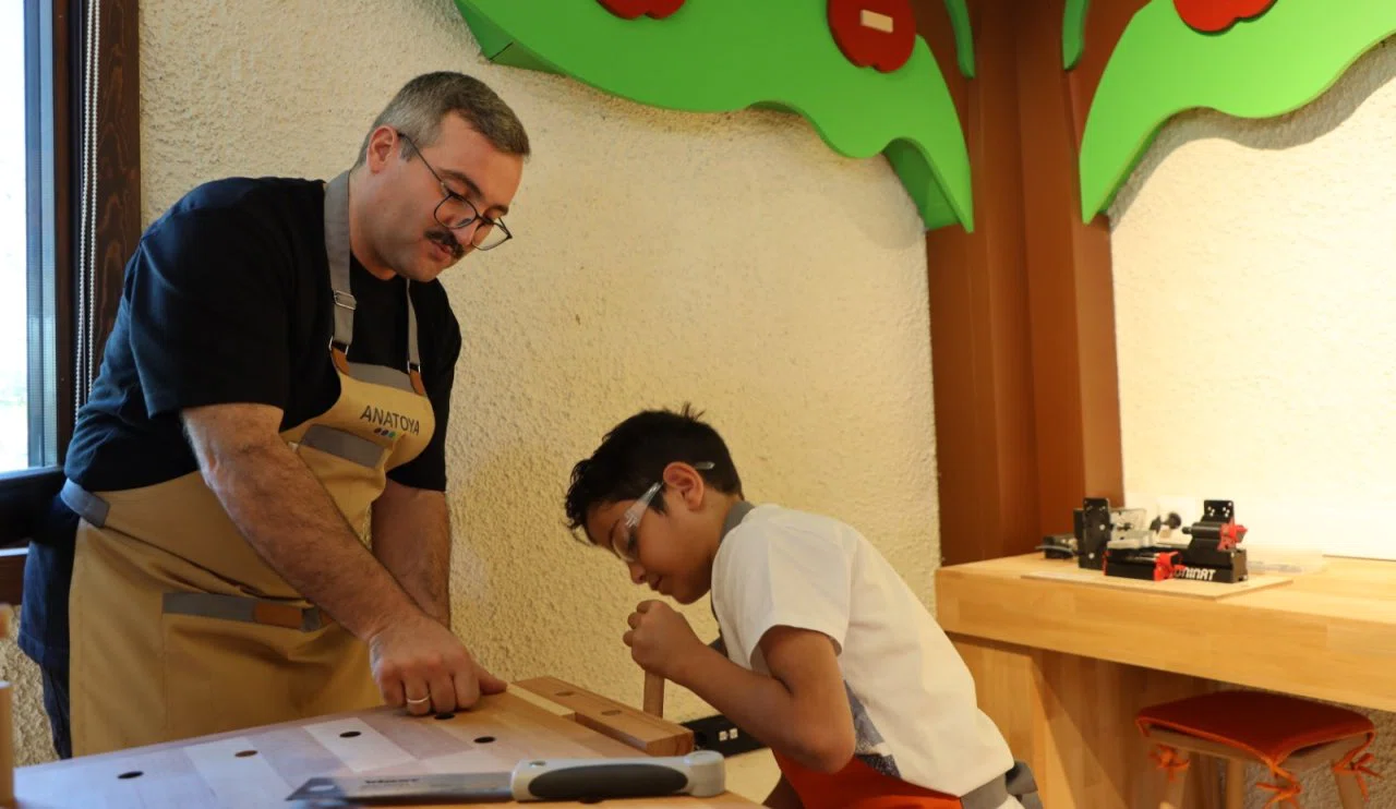 Modern ve güvenli şekilde tasarlanan eğitim alanında, çocuklara uygun kesim makineleri, zımpara ve boyama istasyonları, çalışma tezgâhları gibi ekipmanlar ailelerin rahatça kullanabileceği şekilde yapılandırıldı.