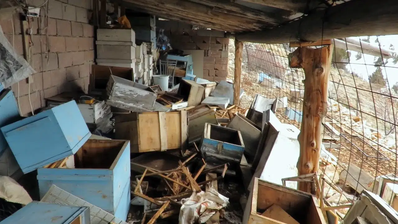 Bazı hanayların demirlerini söken, bazılarının çatısından giren ayı, yüzlerce kovanı tahrip etti. Bal üreticisi Süleyman Bina, “Sadece benim değil, tüm komşuların balını yemiş. Biz atalarımızdan beri bu işi yapıyoruz. Şimdiye kadar böyle bir şey görmedik. Devletimizden yardım istiyoruz” dedi.