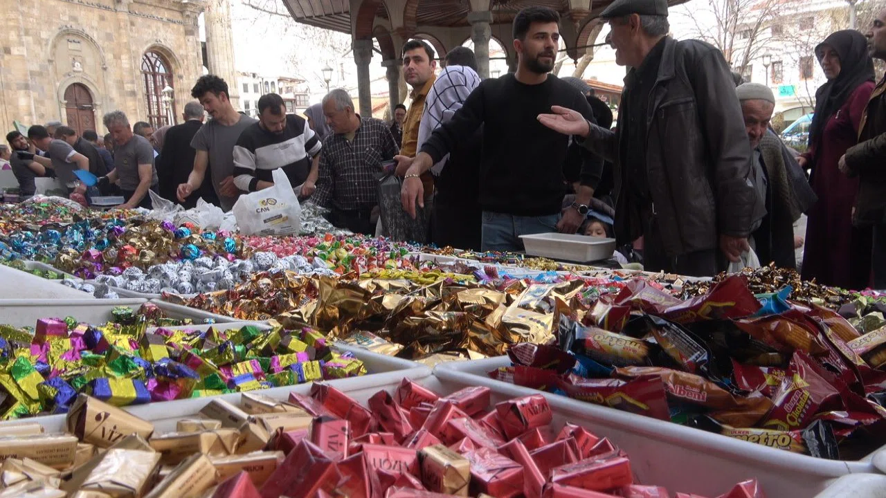 Ramazan Bayramı'na sayılı günler kala Konya'da alışveriş hareketliliği artarken, geleneksel bayram ikramları olan şeker ve kolonyalar tezgahtaki yerini aldı. Vatandaşlar bayram öncesi alışverişlerini tamamlarken, Tarihi Bedesten Çarşısı'nda yoğunluk yaşanıyor.
