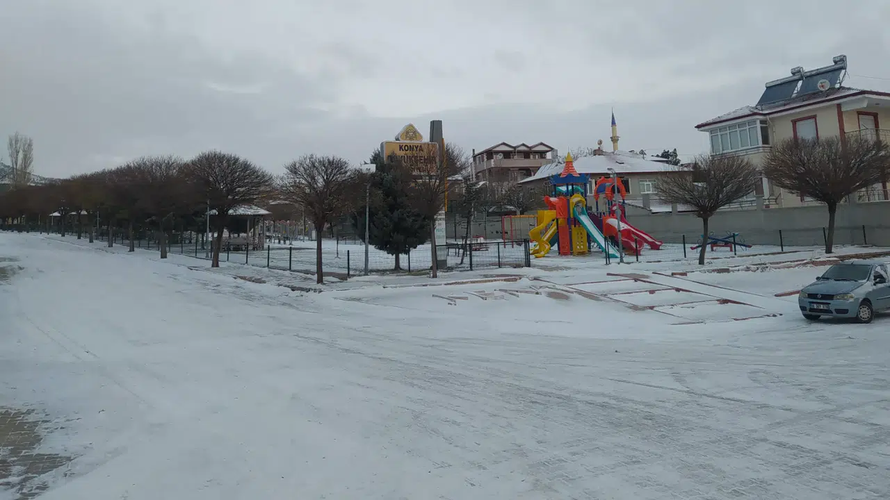 Konya’nın Yunak ilçesinde mevsimin ilk kar yağışı etkili oldu. Yağan karla birlikte ilçe merkezi ve çevresi beyaz örtüyle kaplandı.